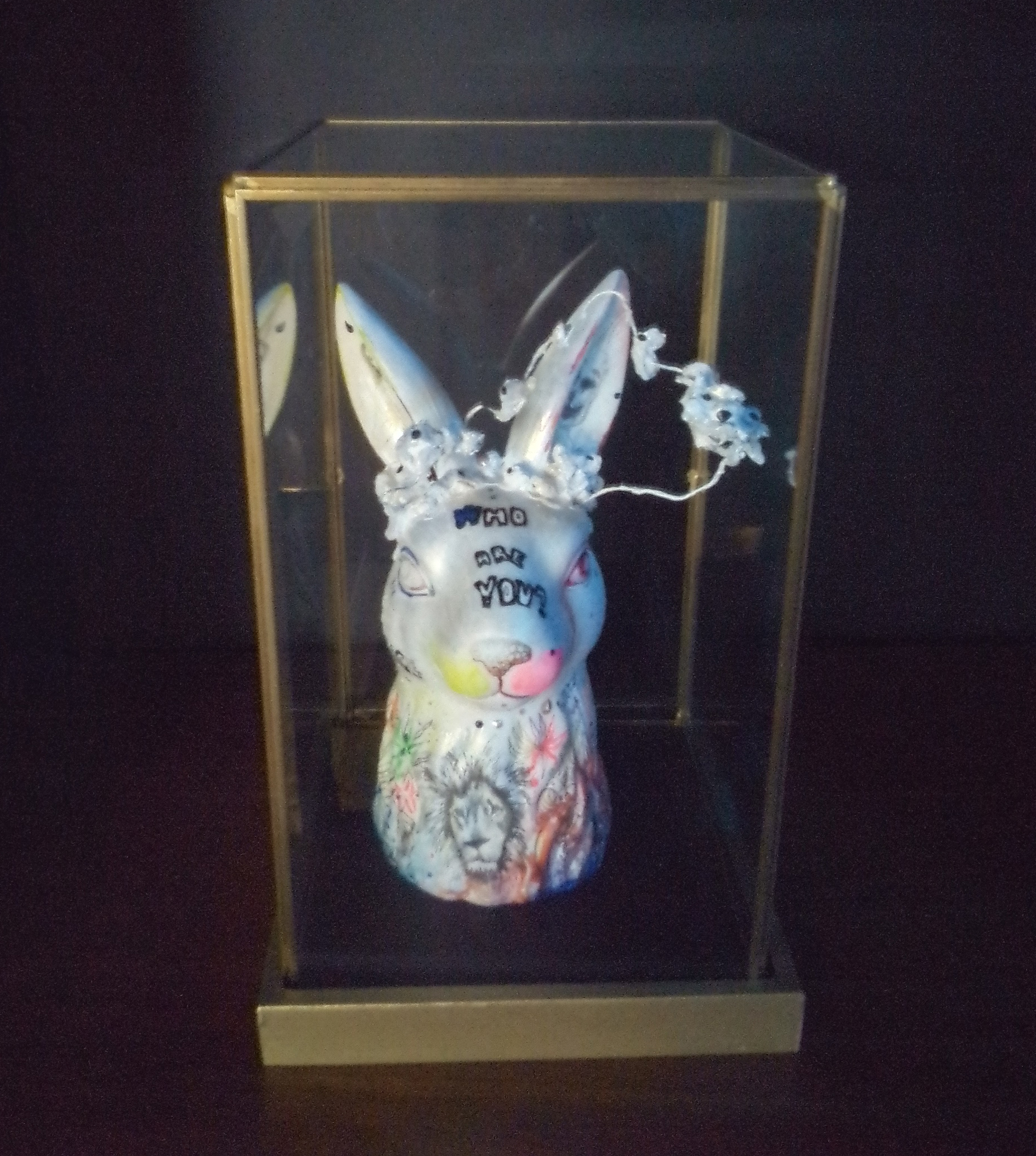 My favorite piece of art used to be a painting that’s no longer here. But my favorite now is the small bunny sculpture over there. It’s funny. It’s colorful. It makes me smile when I look at it.