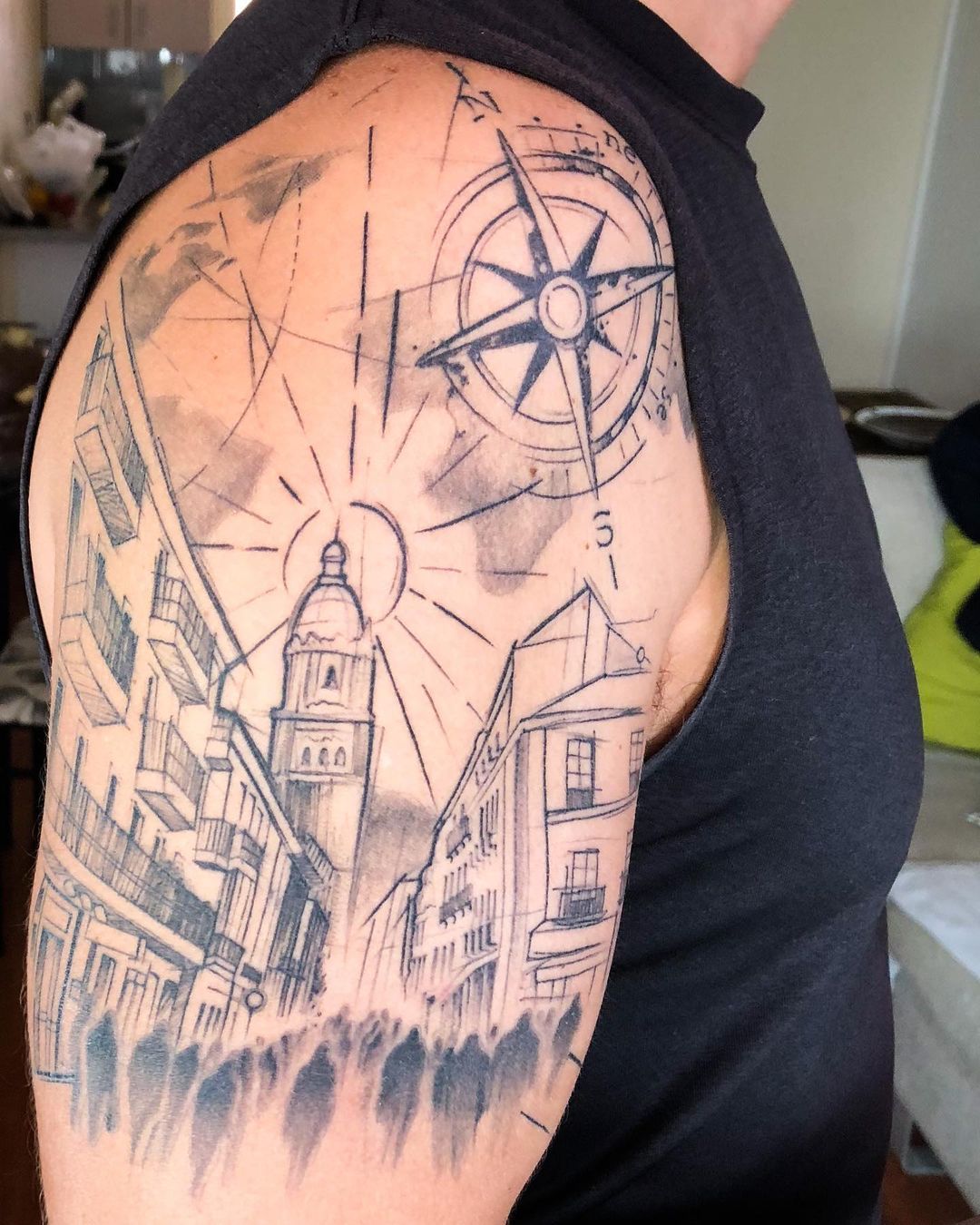 Back in 2017, I was writing a book and spent some time in Salamanca, Spain. Every day, I used to go and look for a coffee shop where I could stay for a few hours, drinking, eating, and writing. And I love one of the streets where I used to go, so I tattooed it on my right arm as a reminder of those inspiring times.