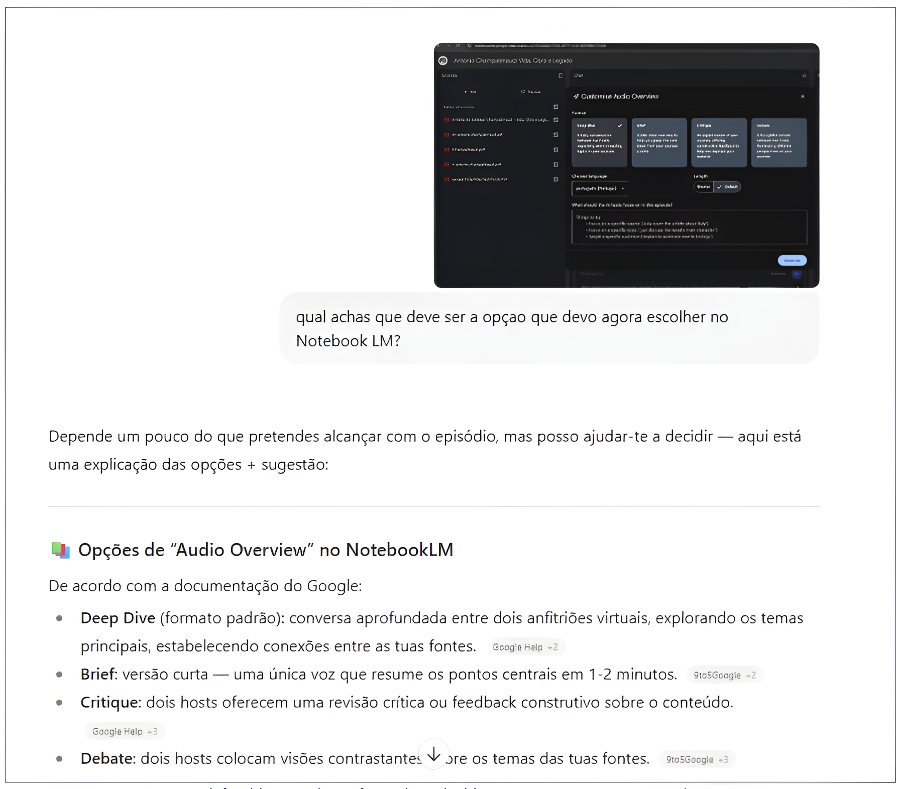 Part of the conversation with my assistant ChatGPT about NotebookLM audio mode