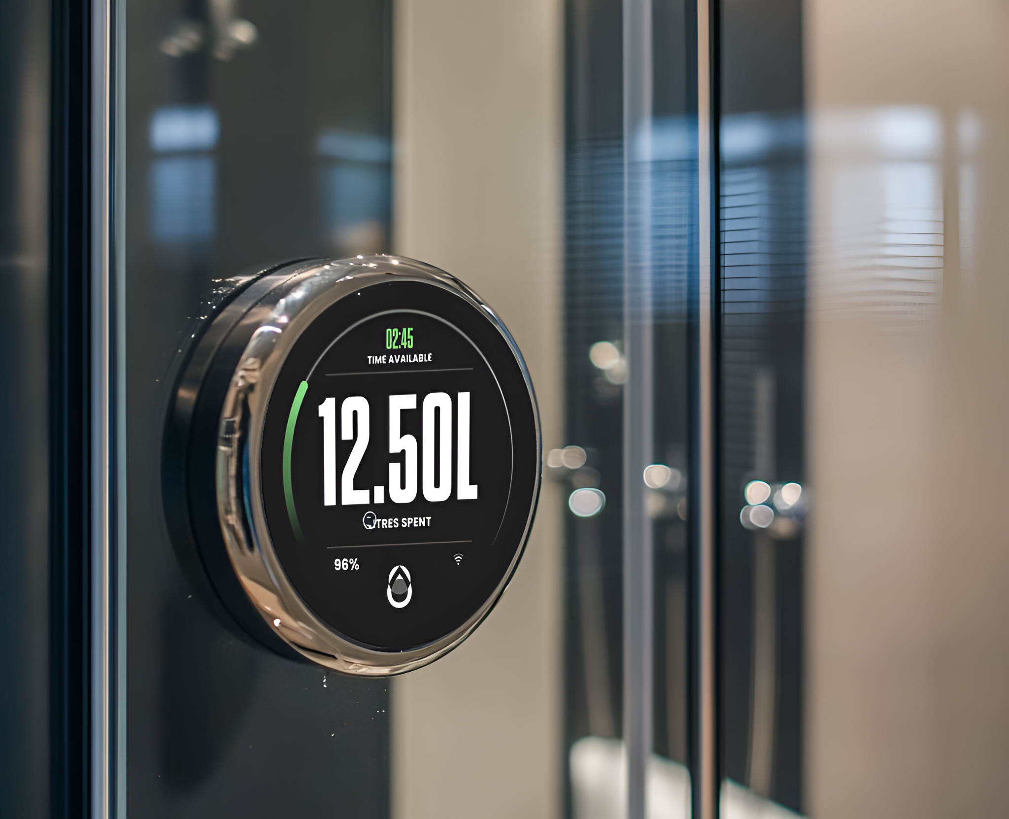 Once it recognises the sound of running water, it automatically activates and starts tracking usage. Guests can see their water consumption as they shower and receive subtle alerts when they exceed sustainable levels, encouraging shorter and more efficient showers without reducing comfort.